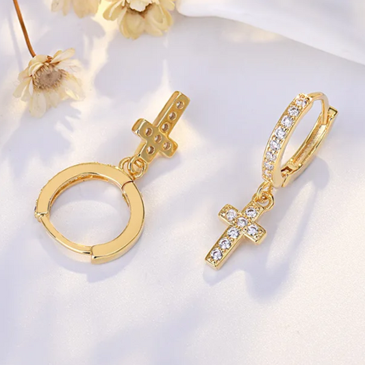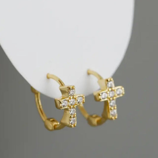ARGOLLA CRUZ PLATA CIRCONES BAÑADA EN ORO