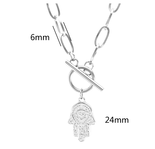 COLLAR ACERO QUIRÚRGICO ESLABÓN MANO DE FÁTIMA PLATEADO