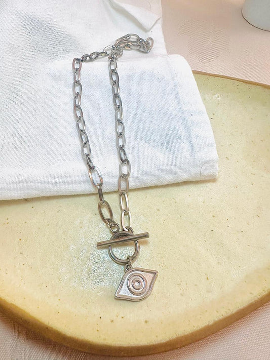 COLLAR ACERO QUIRÚRGICO ESLABÓN OJO TURCO PLATEADO