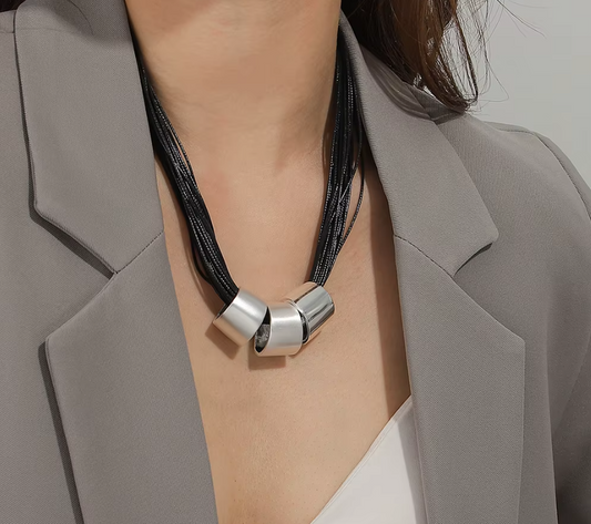 COLLAR BIJOUX GRUESO MULTI GEOMÉTRICO PLATEADO