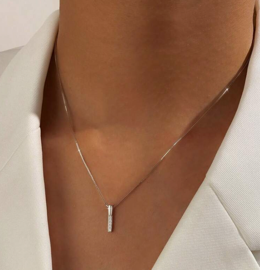 COLLAR DE PLATA PEQUEÑO RECTÁNGULO CON CIRCONES