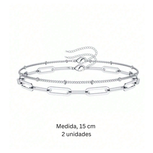 PULSERA DE ACERO QUIRÚRGICO DOBLE ESLABON PLATEADA
