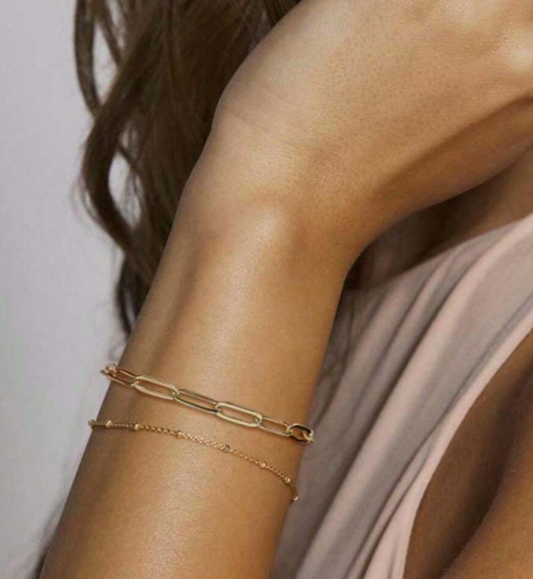 PULSERA DE ACERO QUIRÚRGICO BAÑADA EN ORO DOBLE ESLABÓN