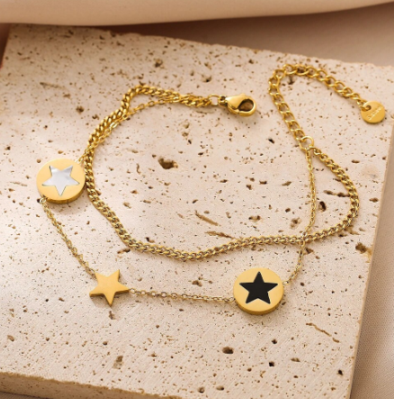 PULSERA ACERO QUIRÚRGICO ESTRELLAS BLANCA Y NEGRA