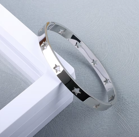 PULSERA ACERO QUIRÚRGICO CUFF ESTRELLAS PLATEADA