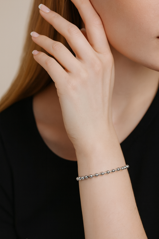 PULSERA ACERO QUIRÚRGICO SILVER BEADS