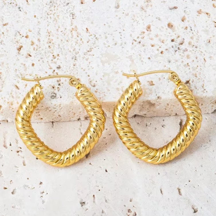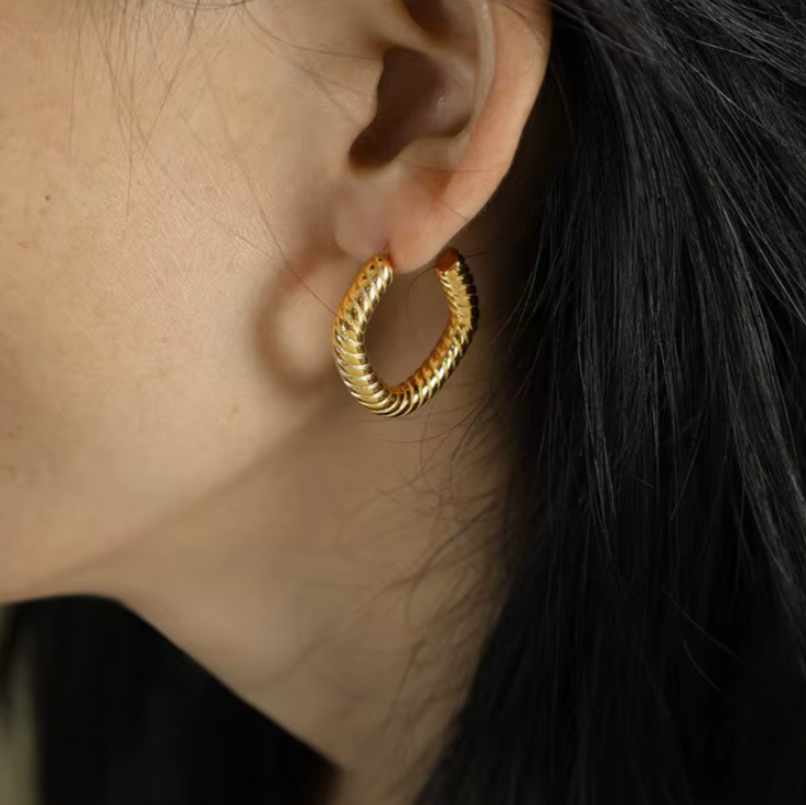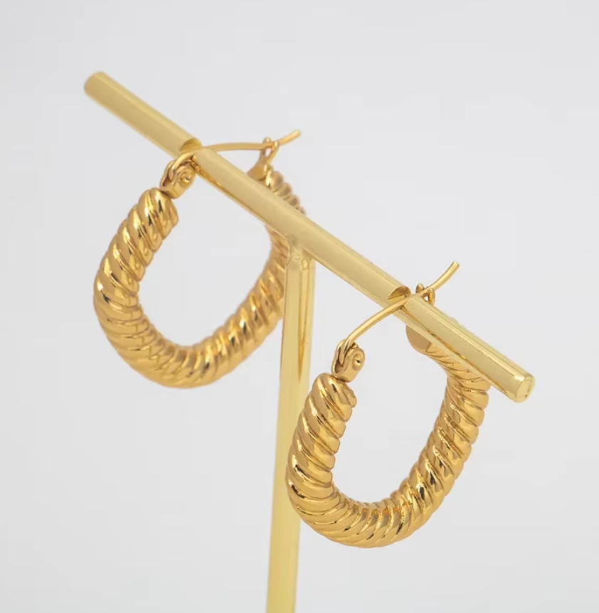 Eleva tu nuestros exclusivos argollas Bag. Diseñados meticulosamente, estos aros están confeccionados en acero quirúrgico de alta calidad, garantizando durabilidad y resistencia, lo que los convierte en una opción ideal para el uso diario. La elegancia de su baño de oro de 18 K agrega un toque de sofisticación que iluminará cualquier conjunto.